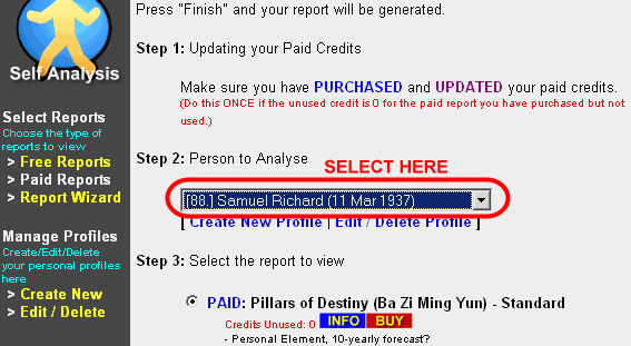 • Select the PAID: Pillars of Destiny (Ba Zi Ming Yun) - Standard